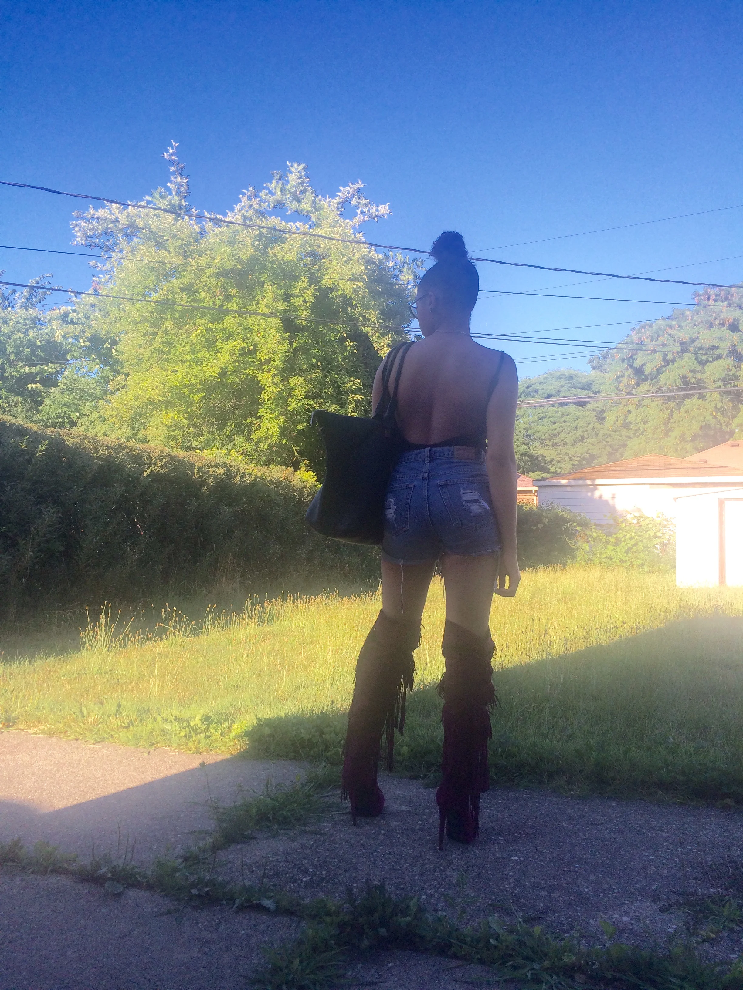 Bodysuit: Zara // Shorts: Thrifted, cut and distressed by me// Boots: Akira