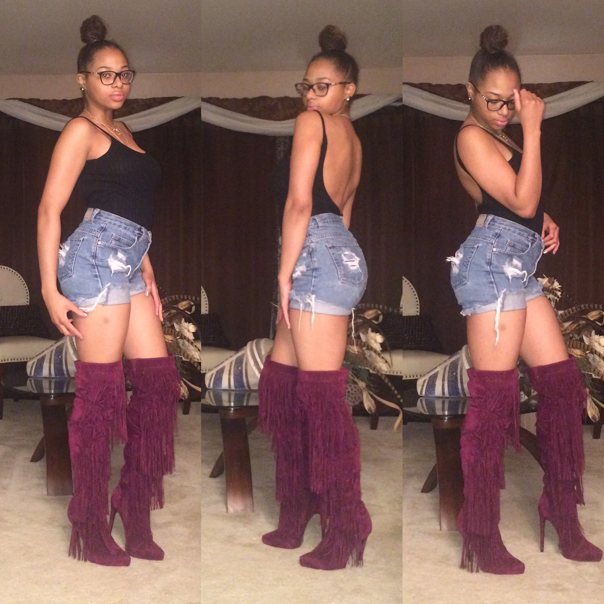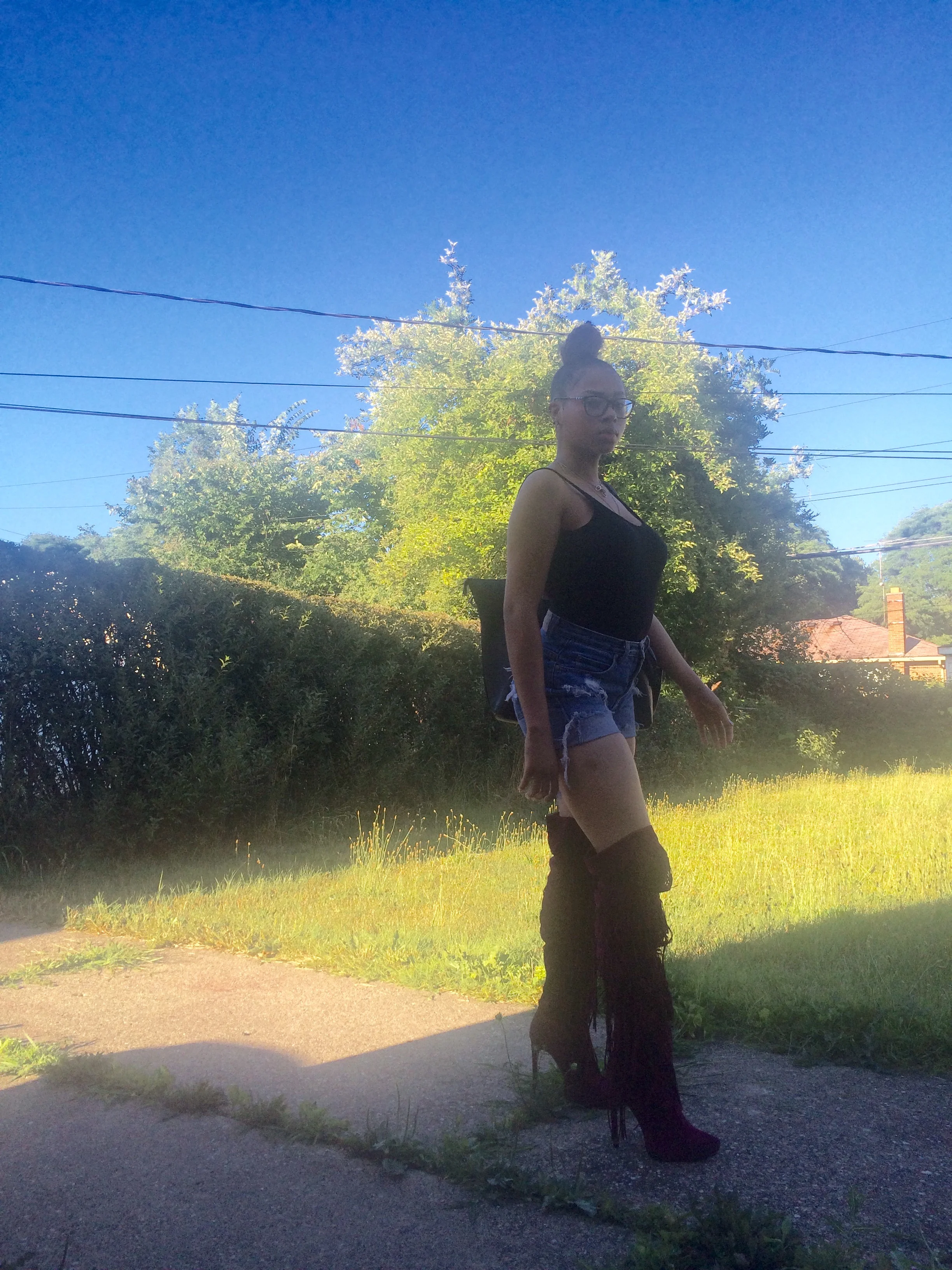 Summer is perfect for distressed shorts and cutting your thrifted jeans into shorts which is exactly what I did to make these shorts I'm wearing that I absolutely love! I am definitely a fan of thigh high boots especially when they are paired with shorts, this combo is a match made in fashion girl heaven. This combo is very chic and edgy, and also brings the bad girl out in everyone. I went simple with this look but not adding any accessories or anything extra but just letting the main components of the outfit be seen.
