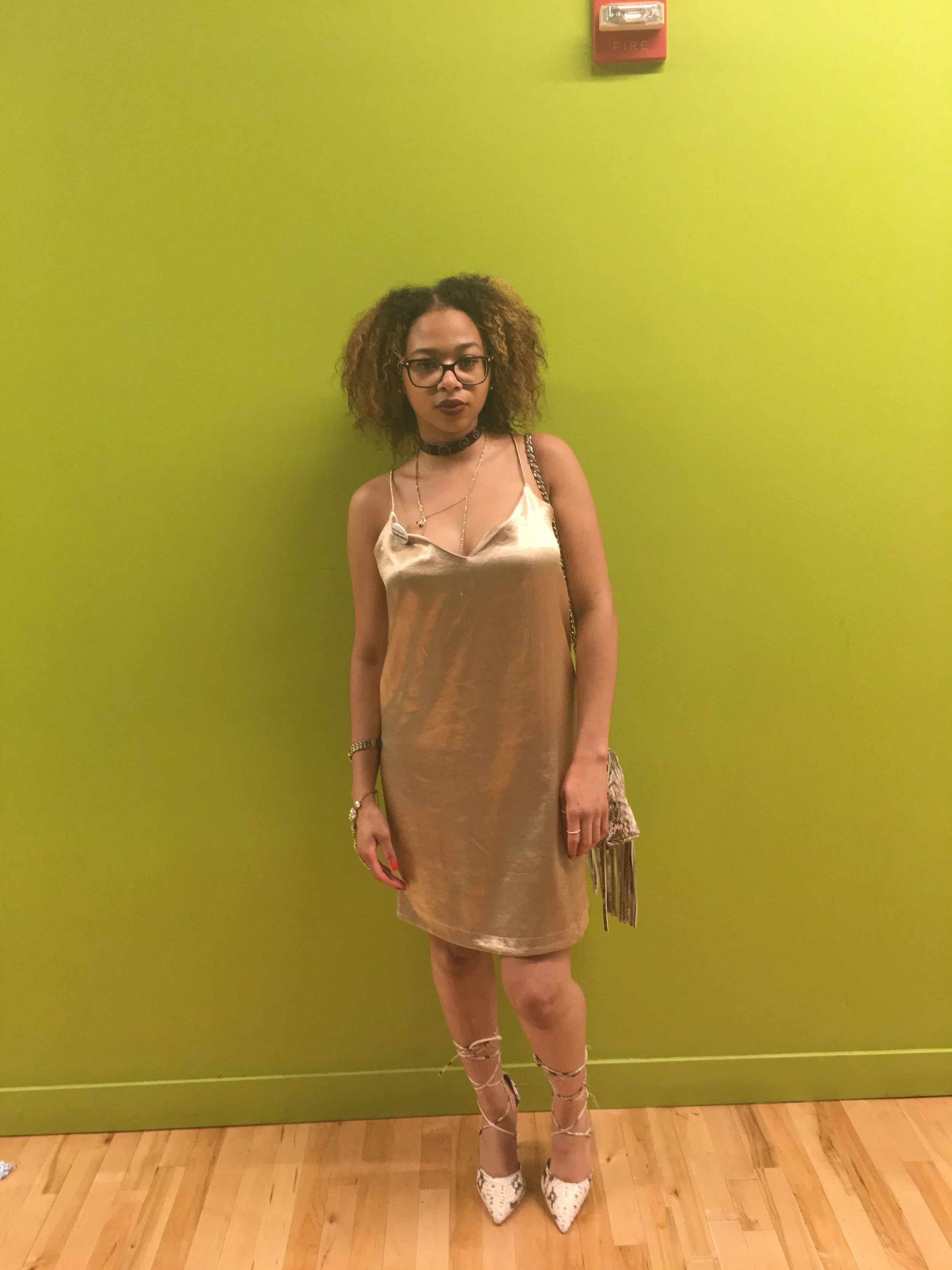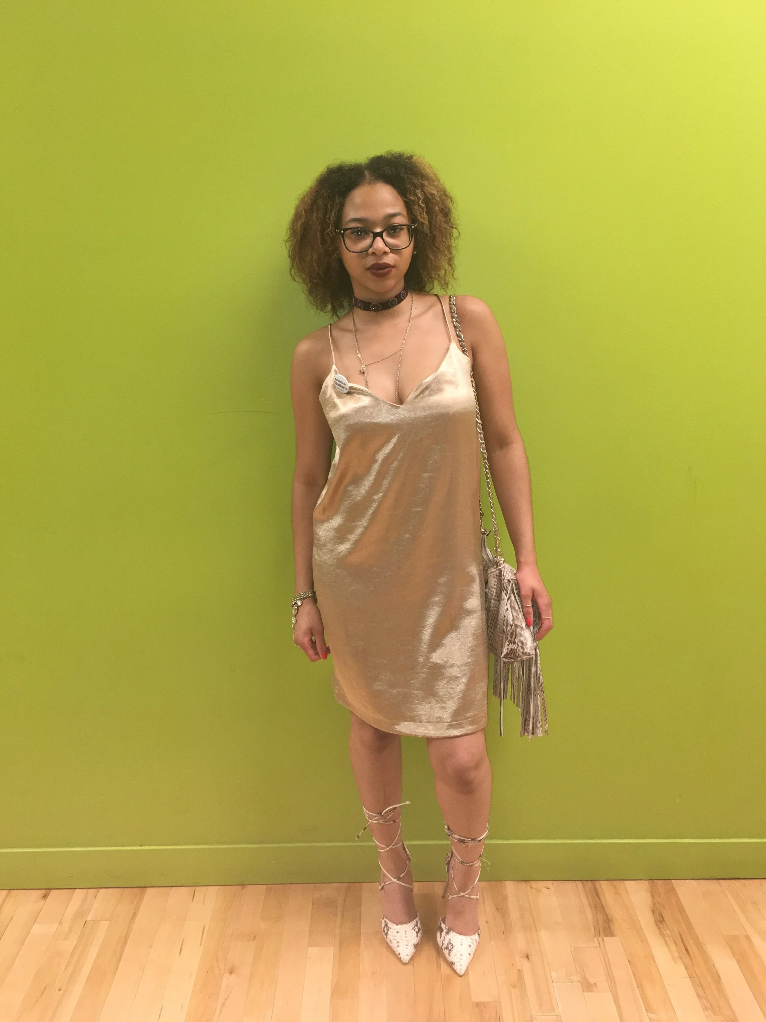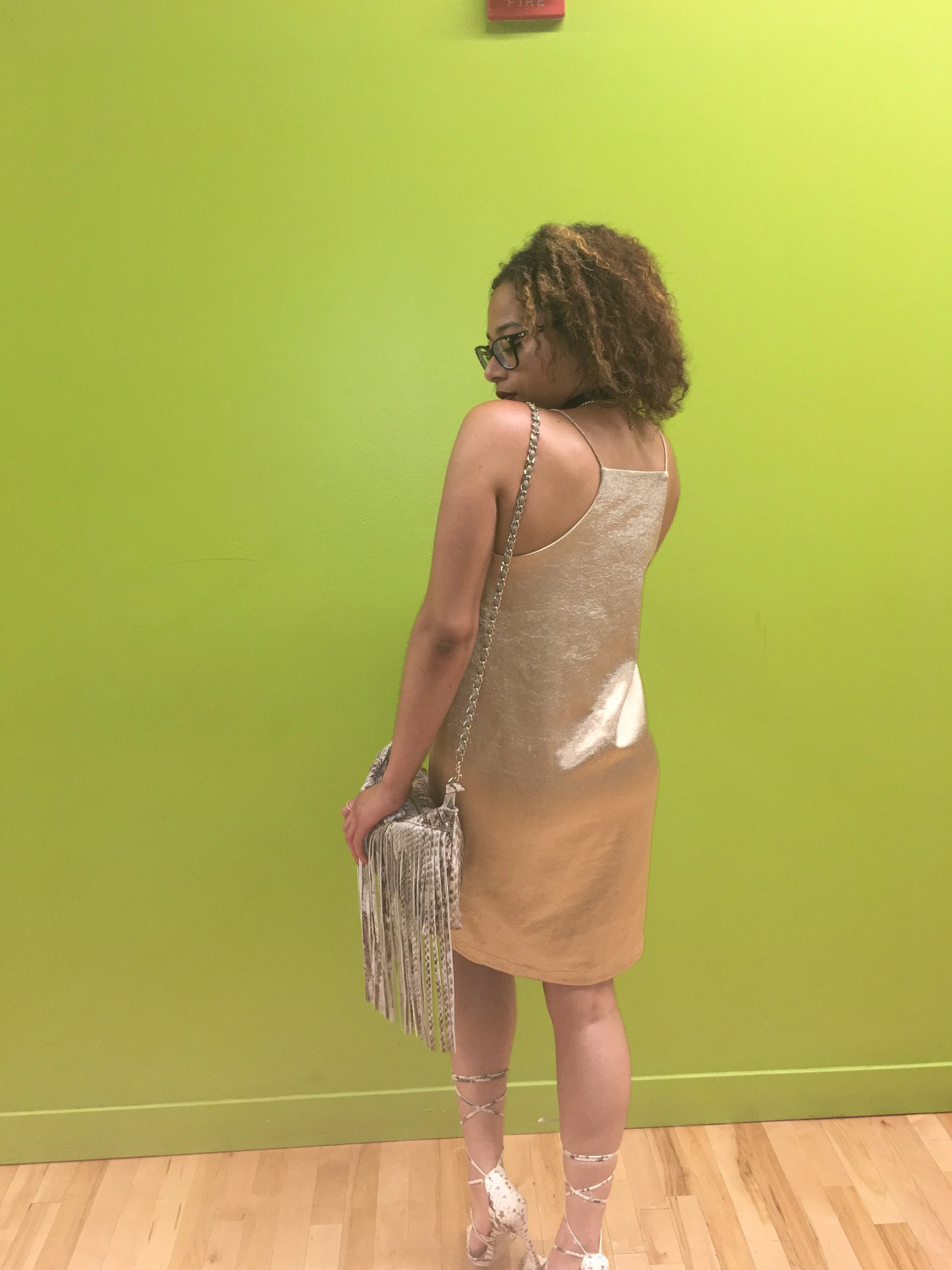 Literally dripping in gold in this slip dress!! I purchased this cute dress for a great deal from Forever 21 awhile ago but never really got the chance to wear it, but I did this past weekend and I love the way it fit, the way it hugs your body but not too tight and how flattering the color was. Slip dresses used to be a really big trend and now its coming back, I paired it with some snakeskin pointed toe tie up heels and a snakeskin clutch that I added a chain to so it would be a crossbody.