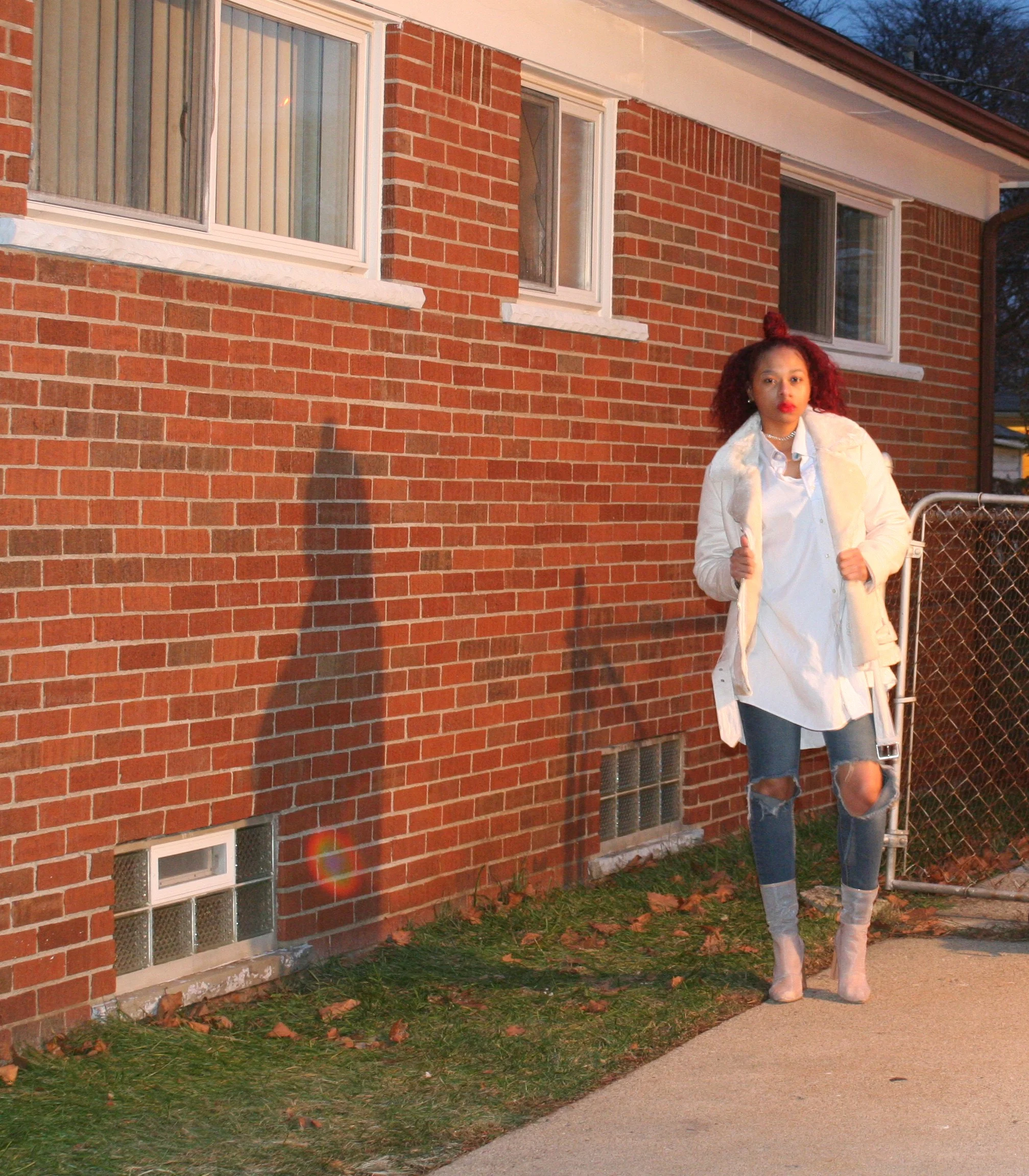 There's nothing I love more than a men's white button up, women can wear it as a dress or asjust a oversized shirt or anything they want because it gives them full freedom to do whatever. I thrifted this amazing Tommy Hilfiger white button up for only like $6 and paired it was a faux suede and fur jacket and jeans just to create a tomboy chic type of look and I loved how it turned out, this look was great for just a chill date to the movies.