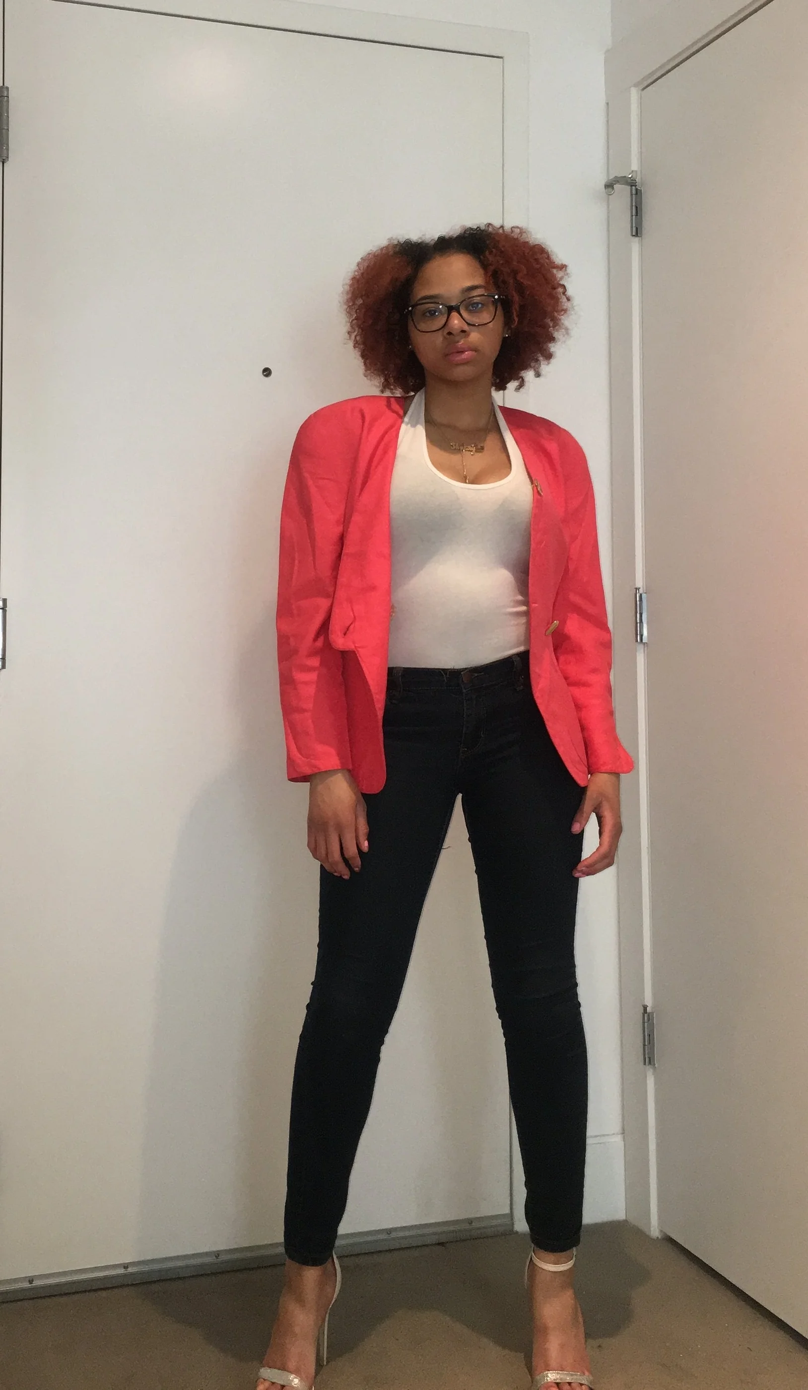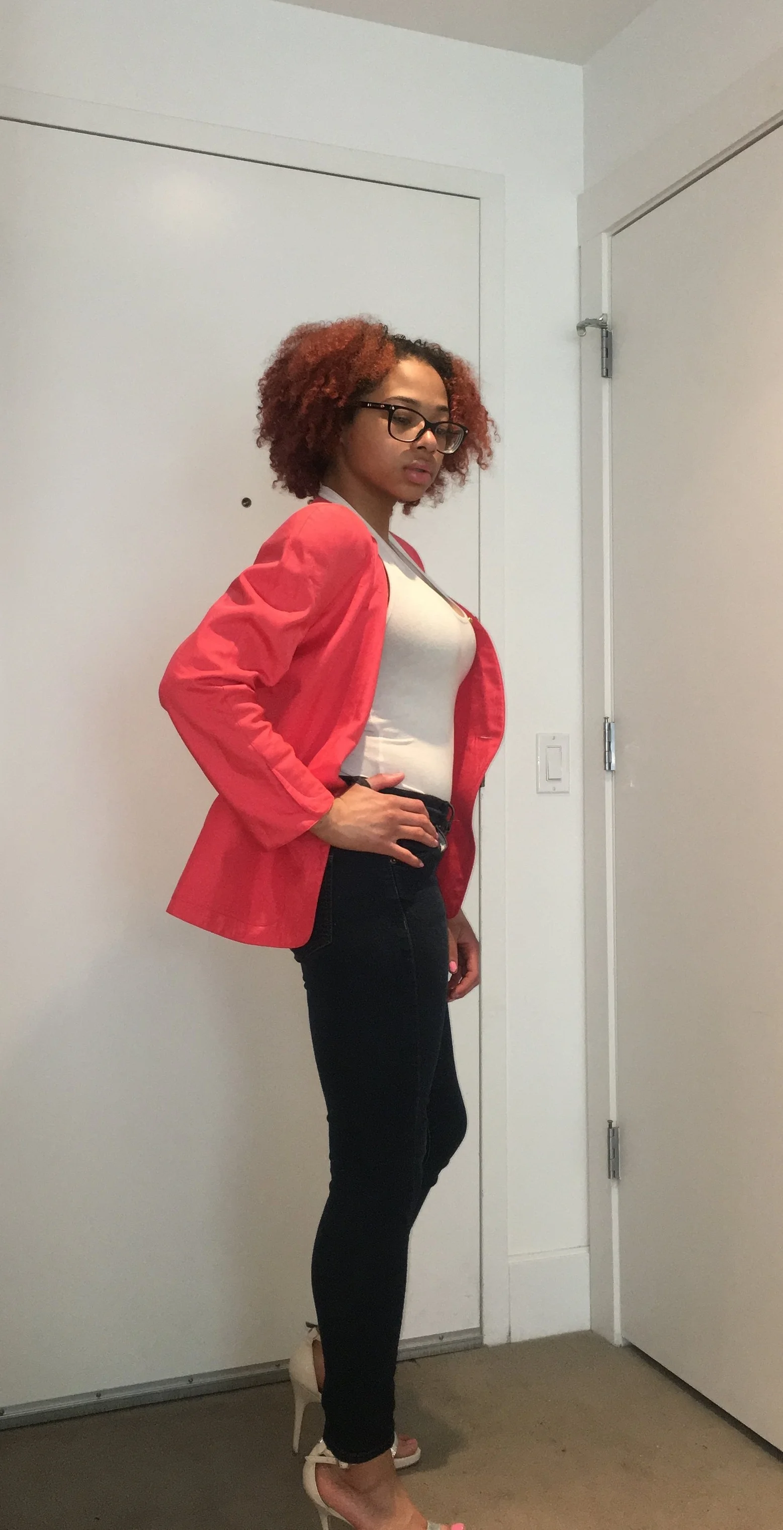 I'm pretty sure everyone in fashion has heard the saying "It's not what you wear, but how you wear it." well being cautious of weather change and this outfit falls right into that. I haven't brought out the shorts and sleeveless tops but I've brought out the colors, especially with this jacket. Spring is all about bright colors like yellow, pink, coral, blue, green, pastels, orange etc. so if you don't want to bare it all just yet, bring out the colors and use statement pieces like this coral blazer I wore so you can look like spring, but still be prepared for Mother Nature to change her mind.