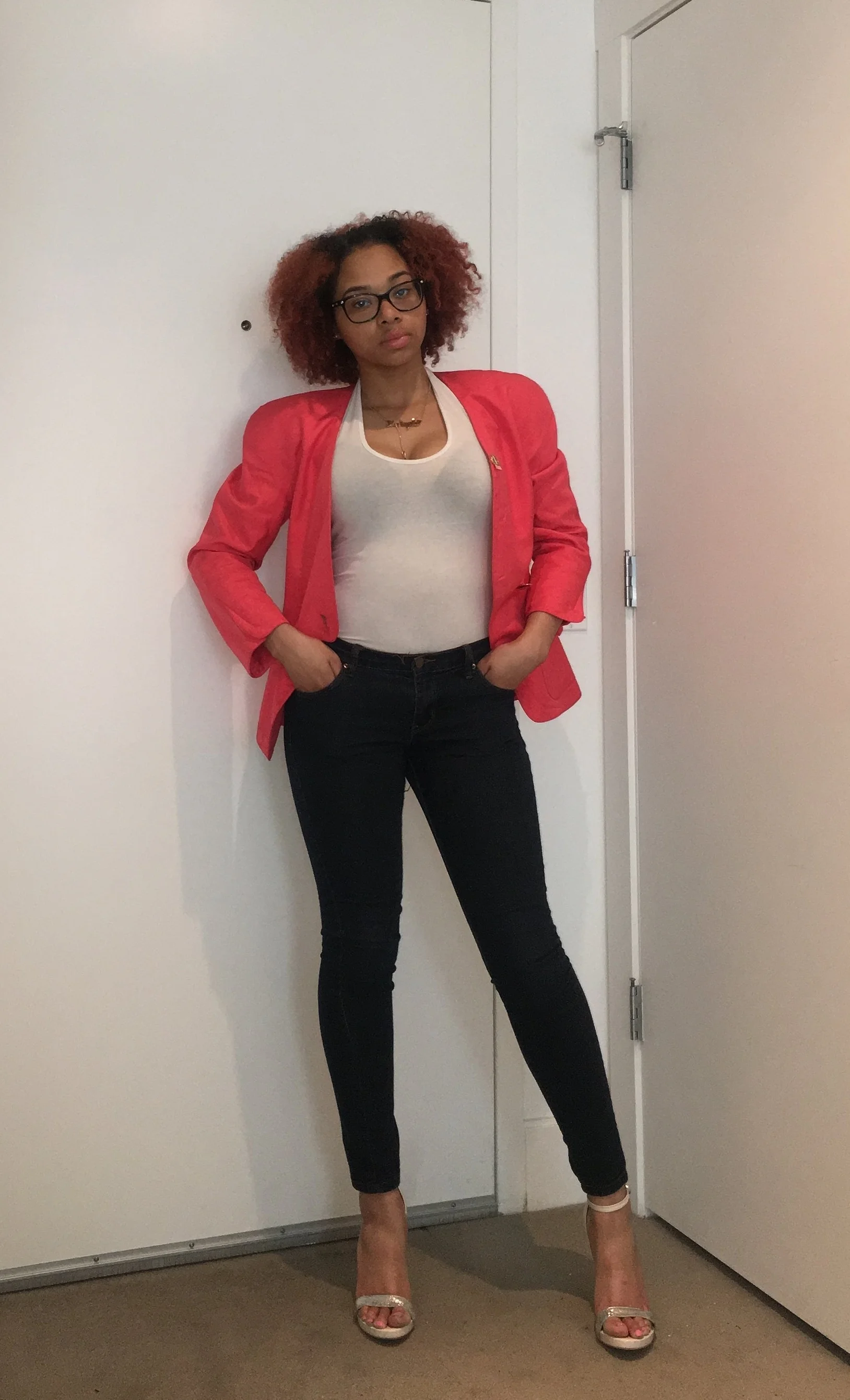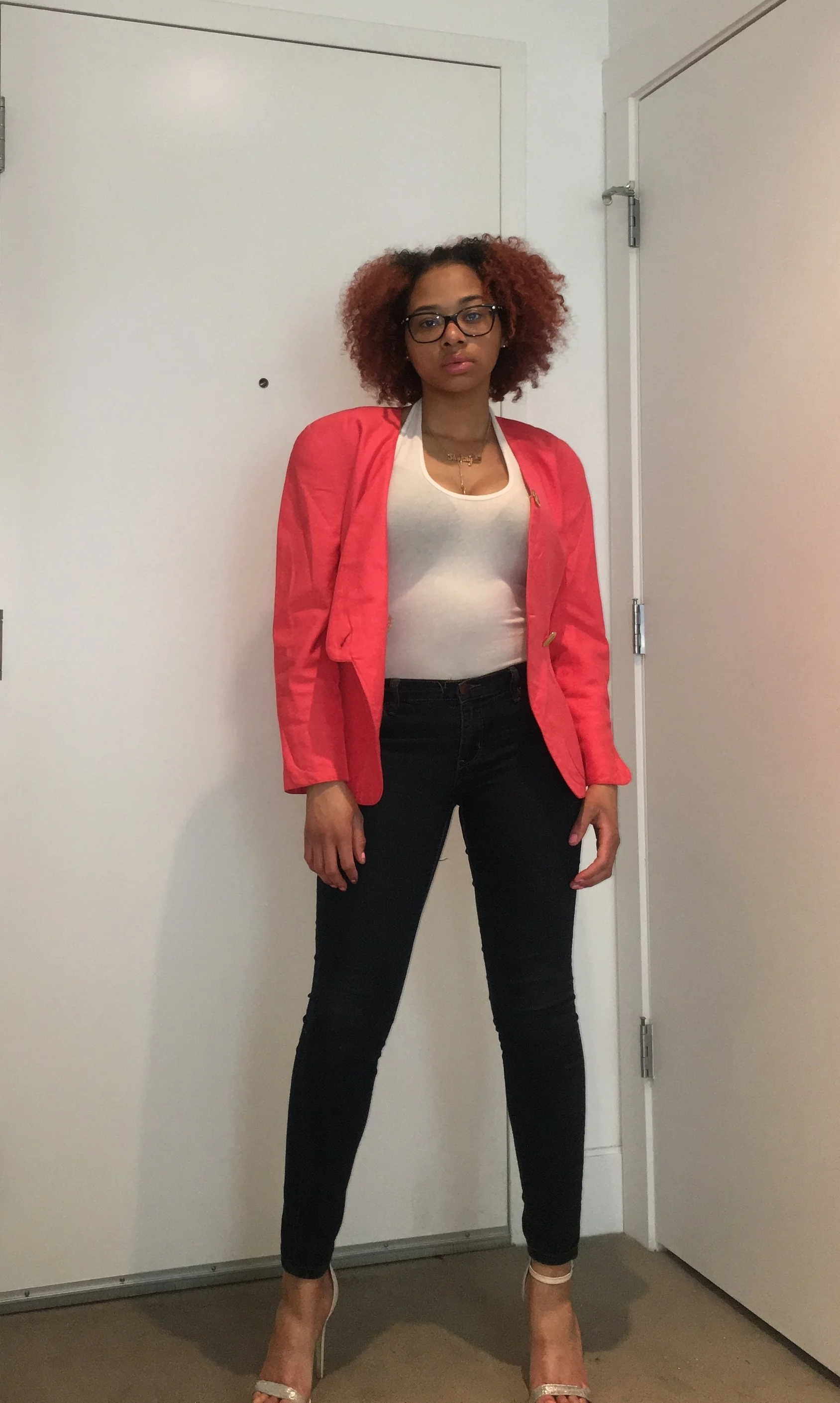 Blazer: Thrifted by Girl Goodies// Jeans: Forever 21// Bodysuit: Forever 21// Shoes: Sam Edelman