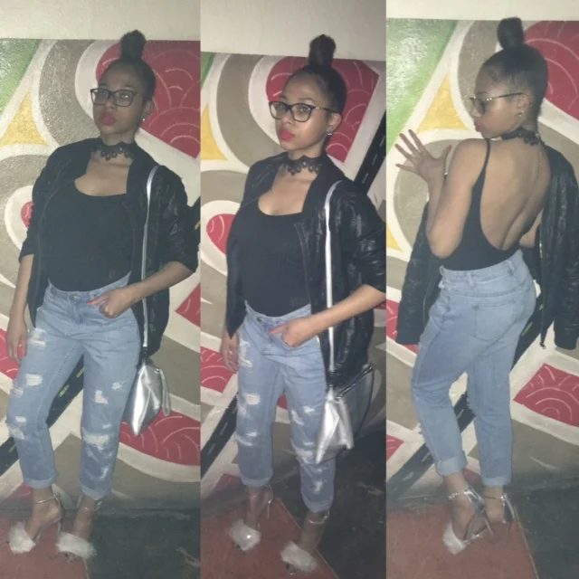 The shirt that I'm wearing in this picture can you believe that it didn't come like that? It was actually just a regular mesh shirt from Forever 21 that I had only worn once that I decided to just cut holes in! You know how you were originally supposed to wear a certain outfit and you end up wearing something totally different and it comes out better than you thought? Well that's what happen with this outfit! I originally planned on wearing something completely different to this art show I attended, but it was snowing really bad(the Chicago weather was hating on my new outfit) so I had to put together something else to wear and I COULD NOT figure out what to wear, I didn't know what to do, then I got the bright idea to cut up this shirt I never really wore before and I paired it with some ripped jeans, gold jewelry, a white fur shall collar from Zara, a really cute bra for decoration, a black bomber jacket, and these cute sunglasses from Forever 21. The outfit came out really cute and I'm proud of this last minute outfit and what I originally bought to wear can be saved for something really special!
