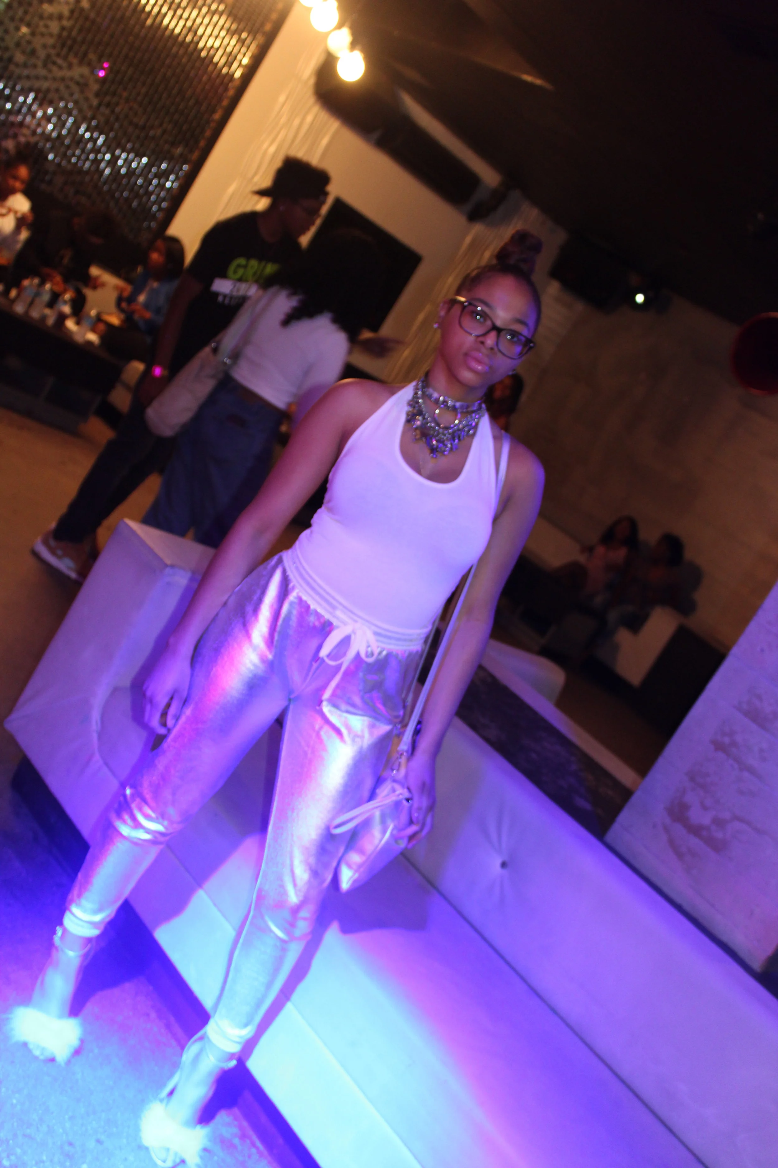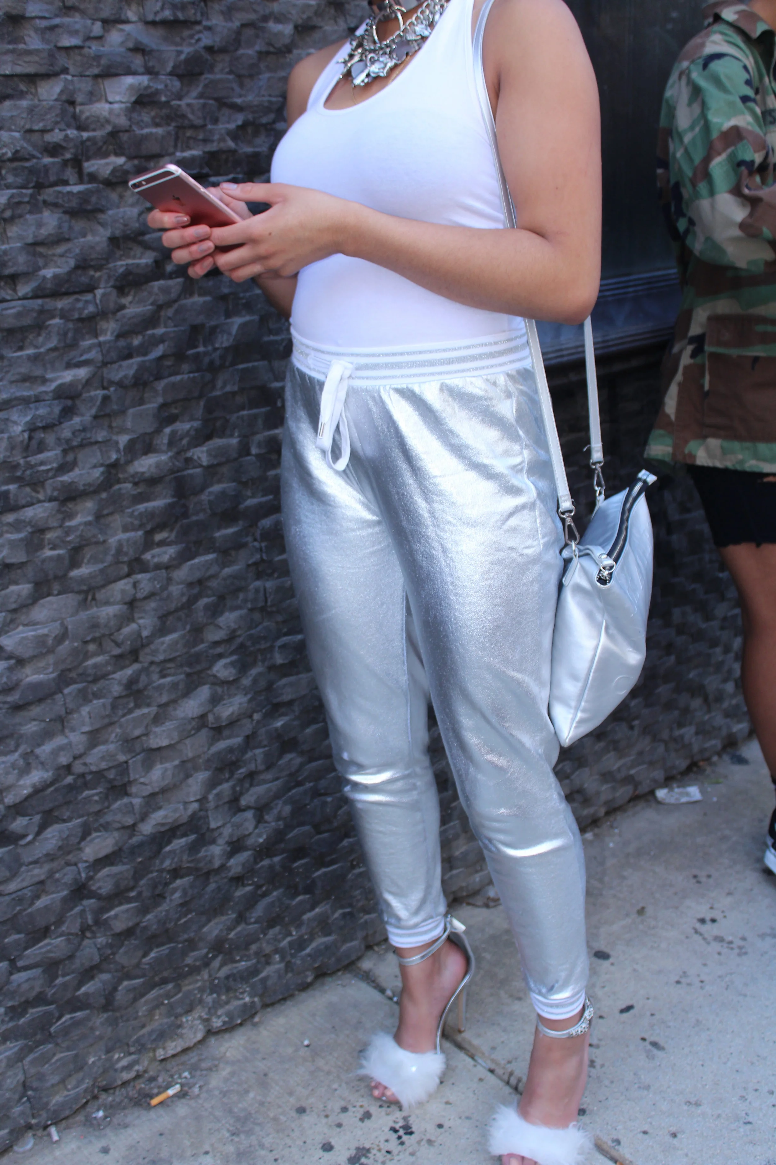 Get into these metallic silver pants, don't you just love them?!!! When I saw these pants I fell all the way in love with them and believe it or not they were less than $10 which was even more of a reason to bring them home with me. I wore these pants to a brunch and decided to pair them with a white bodysuit and fur heels just to keep it simple and keep the attention on the pants, I love that the pants have a white and silver glitter stripped elastic band around the waist and ankles with a drawstring just to give it more of a sporty chic look, I love metallic or sequins pants and these are perfect!