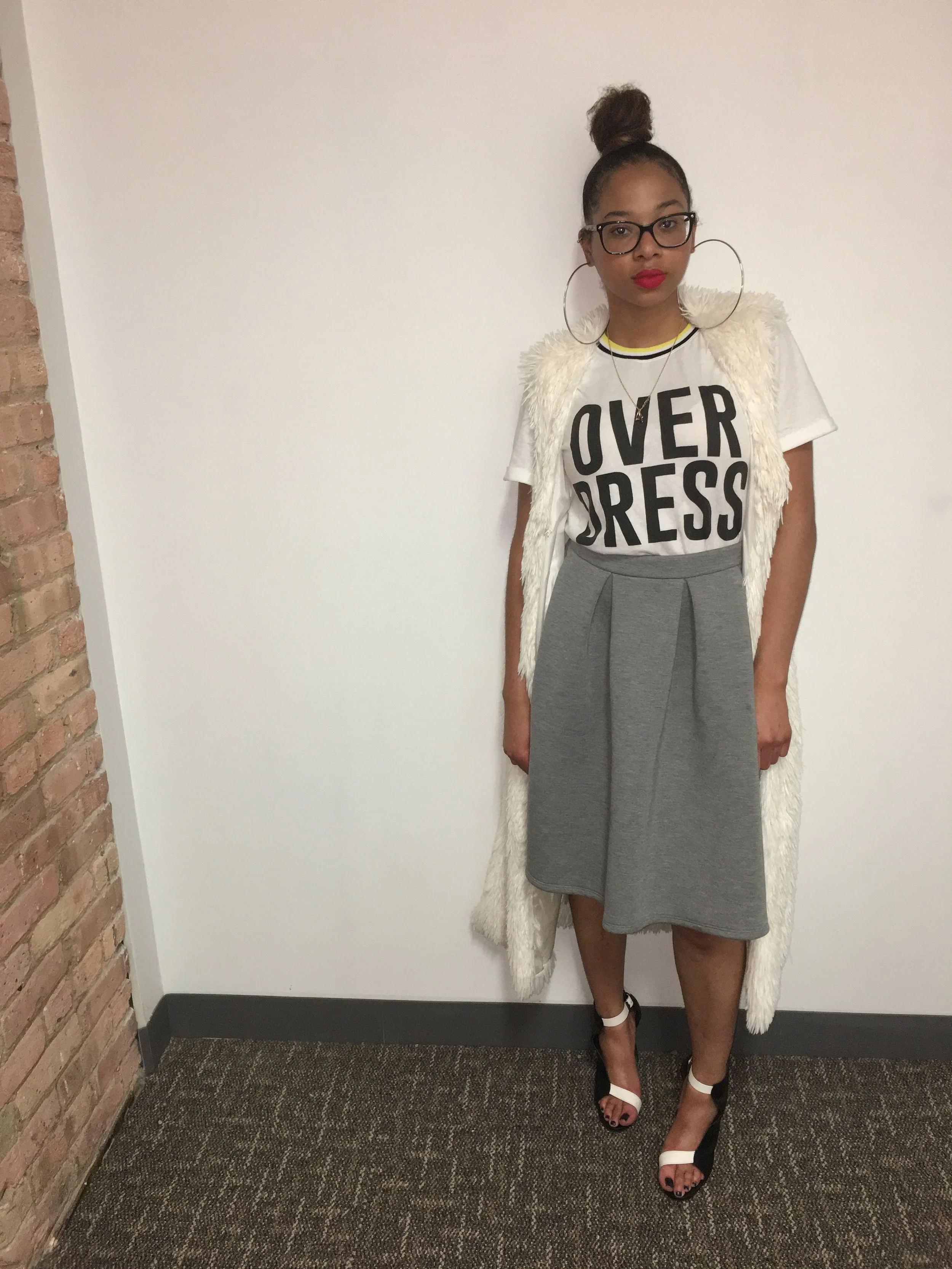 You know its Fall when you start bringing out the fur vests! I love all things fur and now the weather is changing and it's really fall so it's time to bring out all of your fur vests, jackets and accessories (real fur or faux)! I got this vest from Forever 21 last year and I love it, it's super long and has pockets(which is always a plus for me), since it's a vest it doesn't have sleeves but you can always layer with it so that its better for those really cold days. Fur is always so versatile and can go with anything, on this particular day I paired the vest with a t-shirt dress that I just tucked in and a really cute grey skirt and these black and white heels. The 'F' in Fall stands for FUR so get you some so you can slay your Fall and Winter looks!