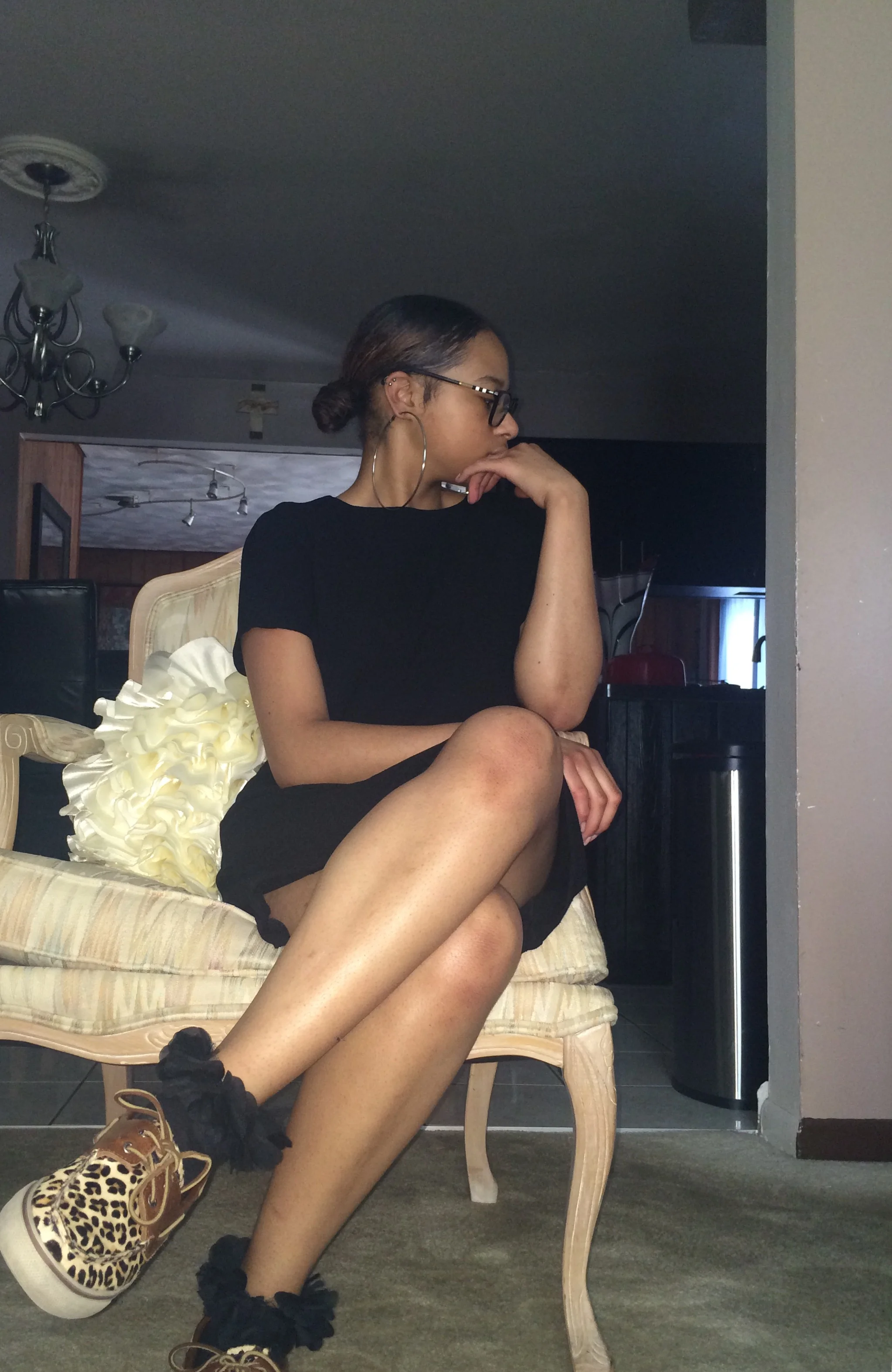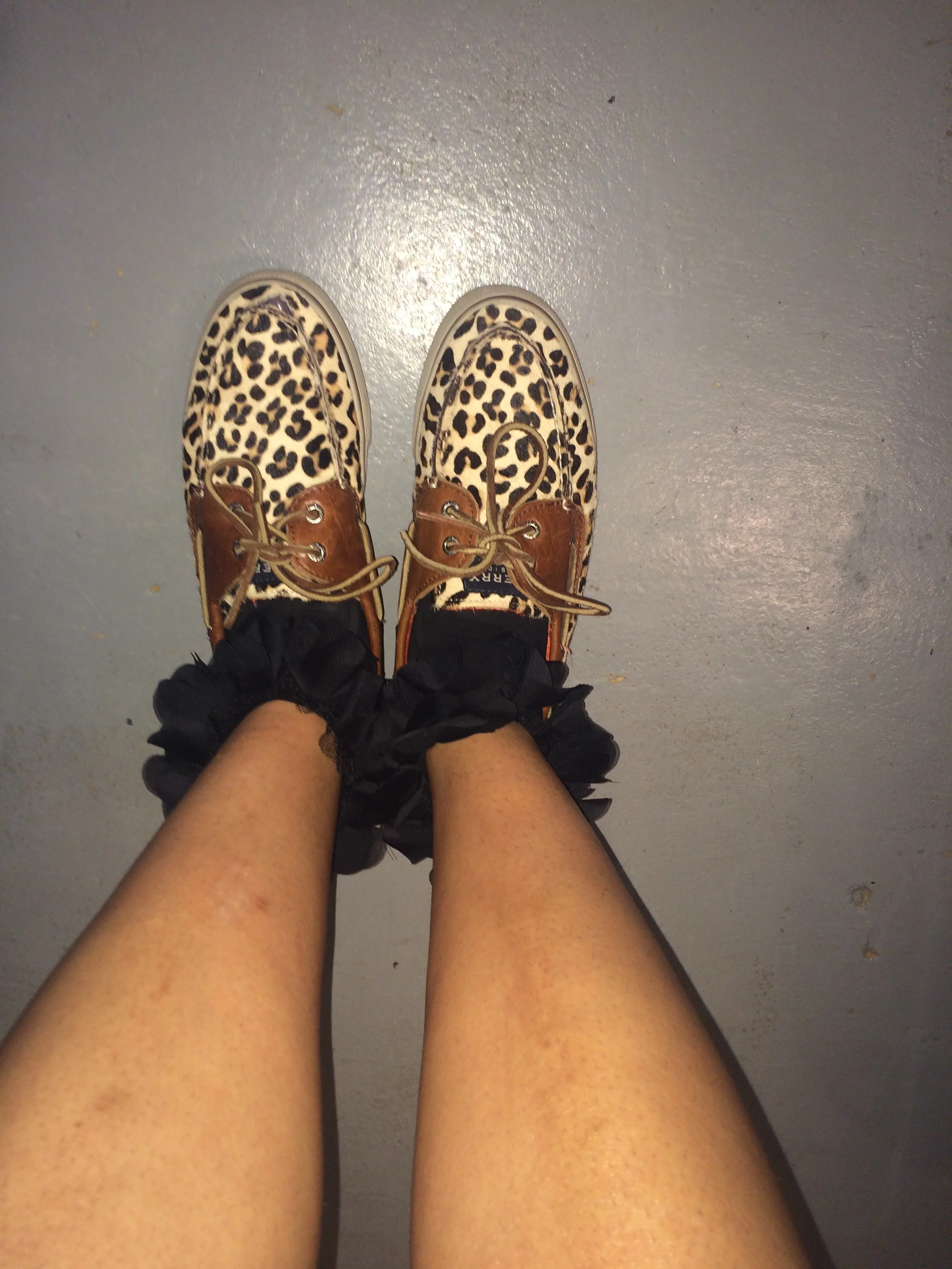Here is today's outfit of the day for work, I work in a store that requires us to mainly wear black which isn't a problem because most of the time I have on black. With our dress code mainly being black Iusually play around with cute shoes and accessories, today I chose to wear my cute cheetah print Sperry's and ruffled socks to add some flair and chicness to a plain outfit. I love this Forever 21 dress because it's loose and an easy piece to dress up or down, I got my Sperry's from Macy's a few years ago and my cute ruffled sock from Nordstrom. Happy Monday everyone, have a productive and stylish day!